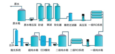 是一种将离子交换技术、离子交换膜技术和离子电迁移技术相结合的纯水制造技术,除盐率高达99%,可以生产出电阻率高达15MΩ.CM以上的超